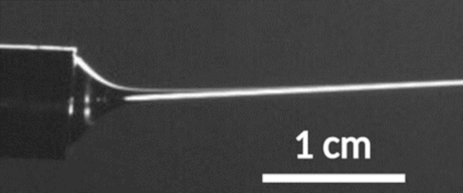 Filament électrofilé à partir d’une solution de polymère - Crédits LMI