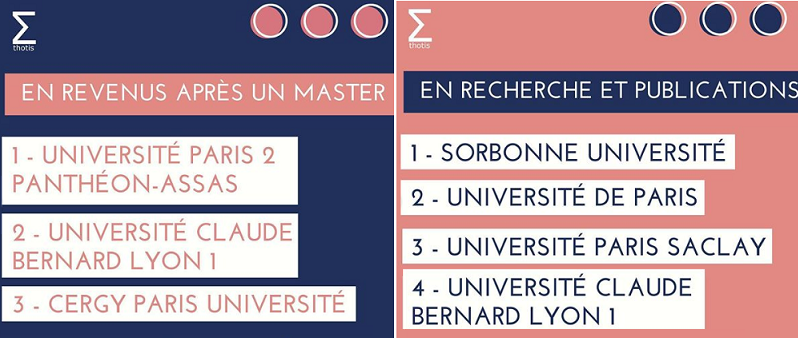 Media étudiant spécialiste de l'orientation, Thotis a publié son classement 2020 des universités fran?aises, en fonction de cinq critères : égalité des chances, réussite académique, recherche et publications, insertion professionnelle et rémunération et attractivité. Où est positionnée l'Université Lyon 1 dans le paysage académique national ?