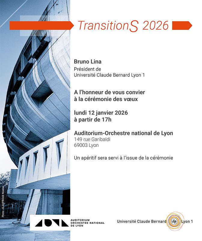 Bruno Lina, Président de l’Université Claude Bernard Lyon 1, a l’honneur de vous convier à la cérémonie des v?ux