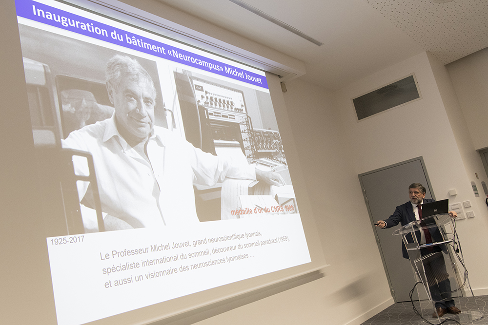 On comprend dès lors pourquoi le nom de Michel Jouvet s’imposait pour désigner ce nouveau b?timent qui achève le regroupement des neurosciences lyonnaises qu’il souhaitait ardemment, dans un Neurocampus intégrant l’h?pital neurologique et neurochirurgical qui porte le nom de son ma?tre, Pierre Wertheimer.
