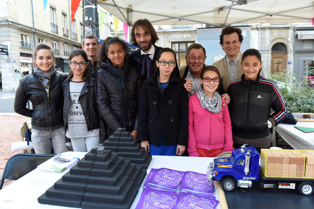 Huit thésards photographiés dans l’exposition étaient présents sur la place Sathonay pour échanger avec le public. Ils se sont prêtés avec plaisir au jeu du ? miroir ? en posant à c?té de leur affiche.