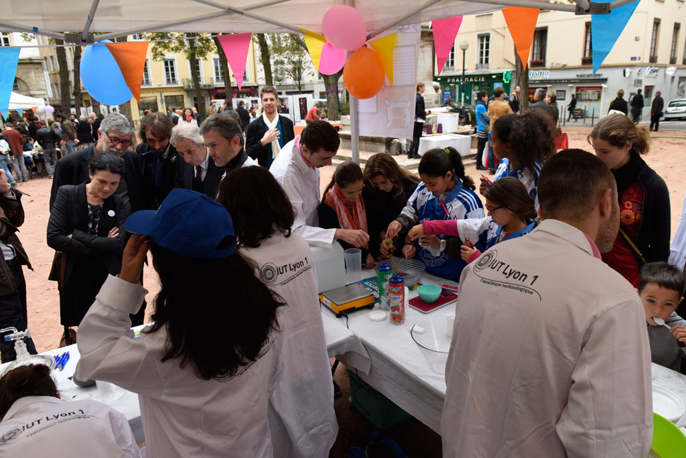 Les quatre ateliers portés par l’IUT Lyon 1 et le département mathématiques de la FST (en association avec l’ICJ et la MMI), ? à la découverte de l’ADN ; Flubber ; A la lumière des mathématiques ; police scientifique et cuisine moléculaire ?, ont connu un vif succès.