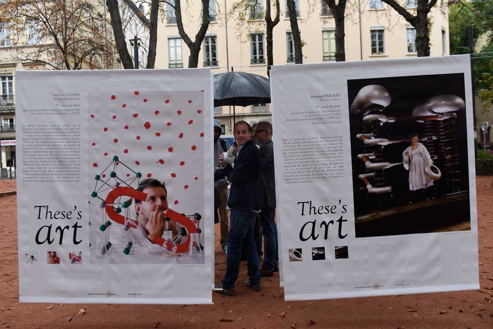 Cédric Villani a aussi joué un r?le de médiateur important en intéressant le public avec son expérience à la fois commune à tous les doctorants et hors du commun du fait de son parcours : ? J’ai accepté avec plaisir d’être le parrain de ce beau projet car je trouve très intéressant l’idée de montrer chaque travail de recherche dans ce qu’il a de personnel. Si on avait pris ma thèse en photo, cela aurait donné quelque chose de très différent ; mais finalement chaque thèse est différente car chaque doctorant y met une grande part de sa propre personnalité ! These’art fait se rencontrer l’art et la science pour montrer ce qu’on a rarement l’occasion de voir : la créativité à l’?uvre derrière le travail de recherche. ?