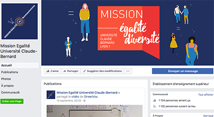 Page facebook de la mission : partage d'actualités sur les domaines de l'égalité femmes - hommes, de la lutte contre les discriminations, le handicap et l'inclusion, la la?cité...mais également outil d'interaction avec ses abonné·e·s