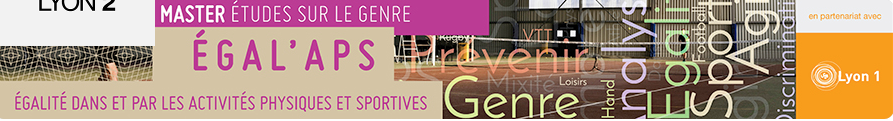 Le Master ?GAL'APS - ?galité dans et par les Activités Physiques et Sportives, master unique en France, associe les études sur le genre et les STAPS (Sciences et Techniques des Activités Physiques et Sportives). Des enseignements théoriques, pratiques et à visée de recherche action et de professionnalisation préparent les étudiant.es à des fonctions de cadre (chargé.e de mission, conseiller.ère) assurant la formation et la mise en place des politiques de l’égalité dans les structures sportives qu’elles soient éducatives, fédérales ou territoriales. Ce master prépare également à l’entrée en doctorat.